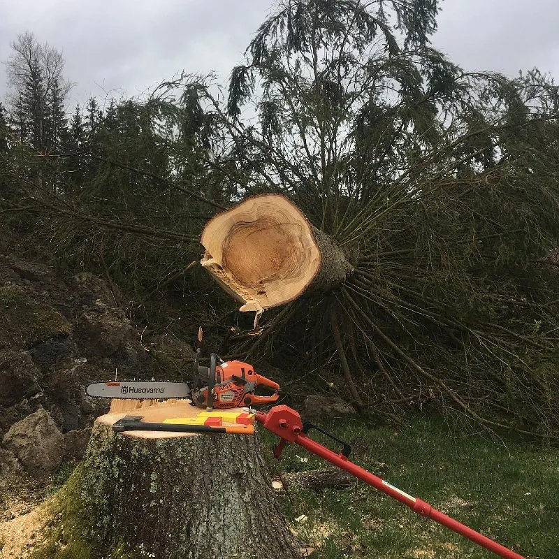 Etter trefelling kan det være nødvendig å fjerne stubben. Vi tilbyr stubbefjerningstjenester som etterlater landskapet rent og klart for fremtidige prosjekter.